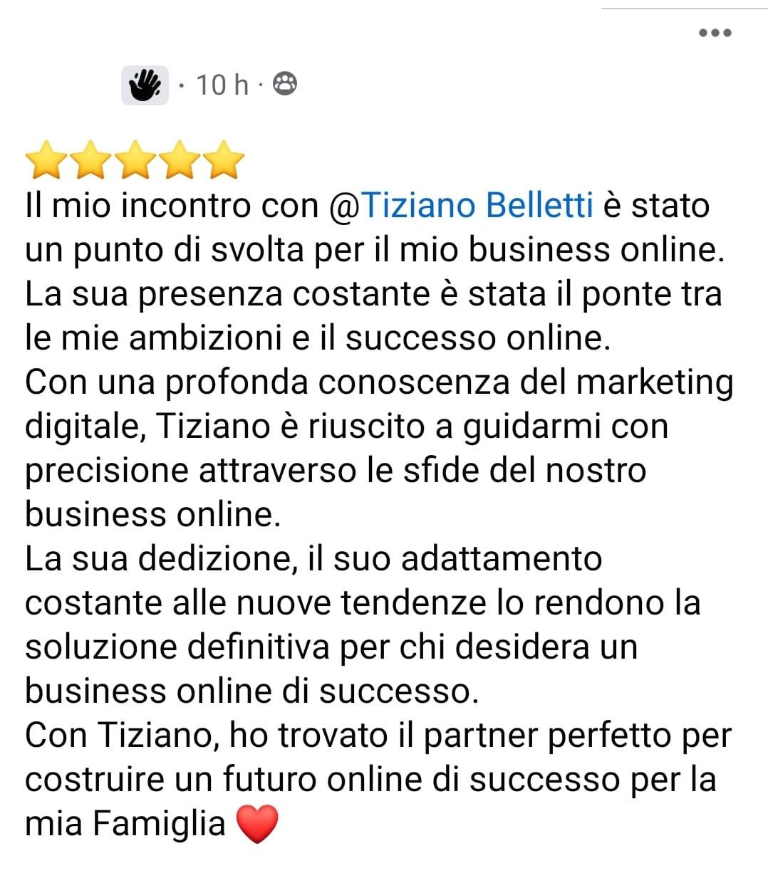 Mi chiamo Tiziano Belletti, sono un imprenditore digitale specializzato nell’aiutare i millennials che desiderano crearsi una seconda fonte di reddito nel mondo online e avviare la propria attività senza rischi .
